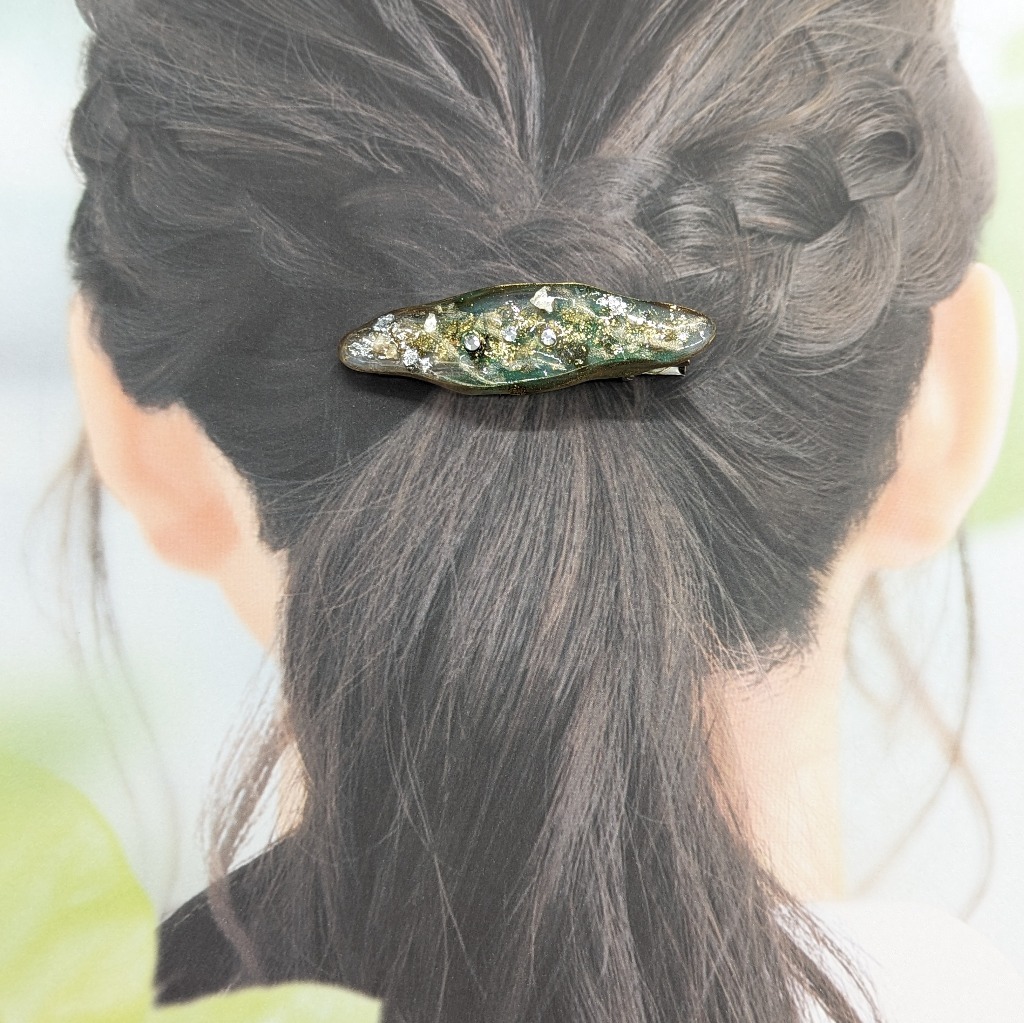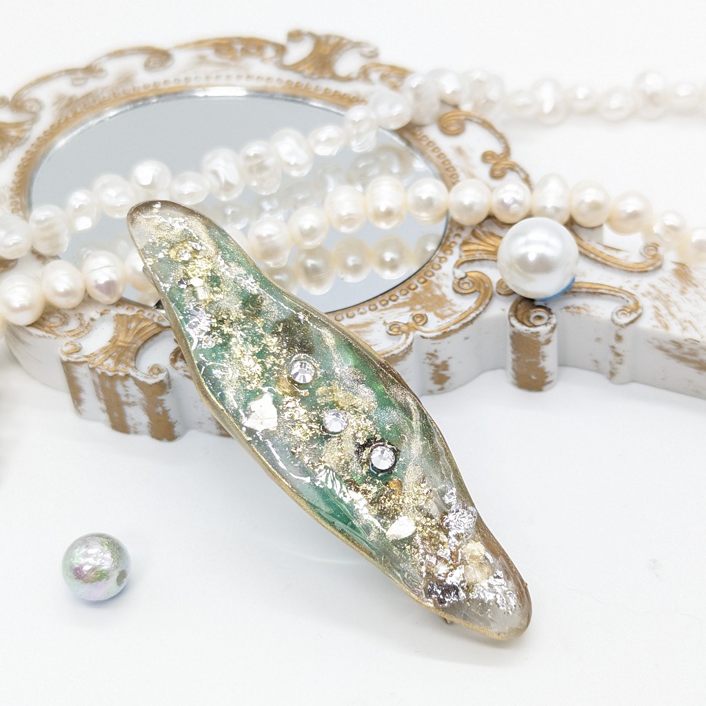 らめ、シエル、ホログラムに金箔をふんだんに使って作ったヘアピン。