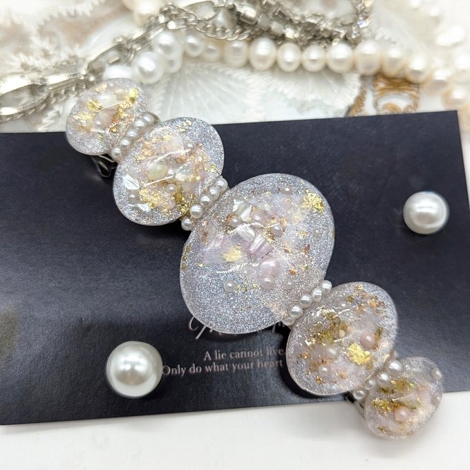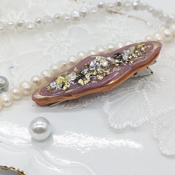 ”minne”に新しくアクセサリーを出品しました。バレッタとピアスとなります。