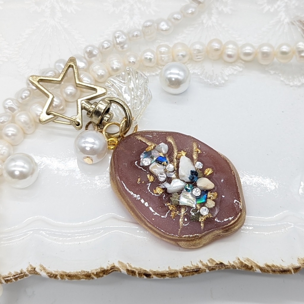 ”minne”に新しいアクセサリーを出品しました。天然石風のキーホルダーとなります。秋にピッタリなアクセサリー!