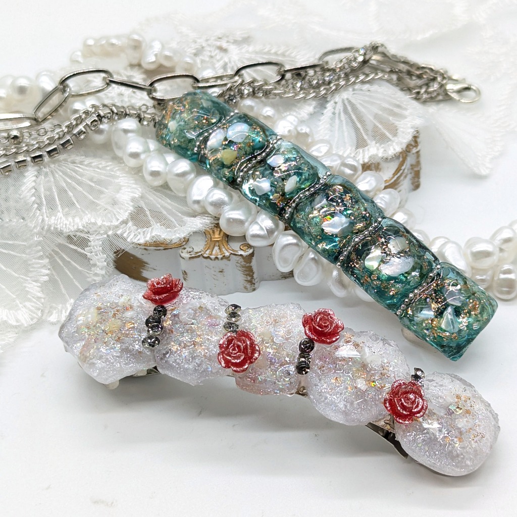 ”creema”に新しくアクセサリーを出品しました。バレッタ2点となります。水面模様のバレッタと、アゲートスライスのバレッタになります。オシャレで可愛らしい感じになりました。ご自身へのご褒美にオシャレ楽しんでも良し。プレゼントにもギフトにもお使い頂けます。
