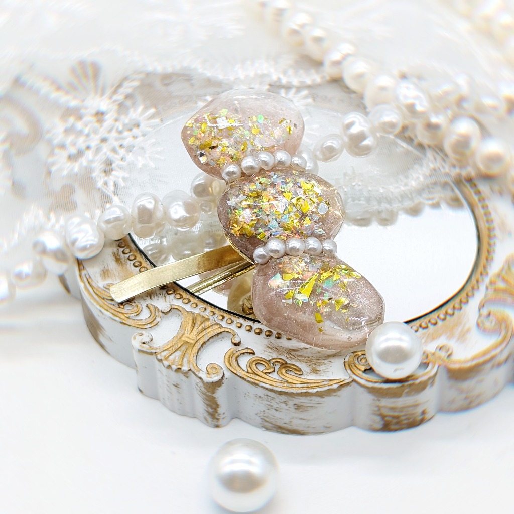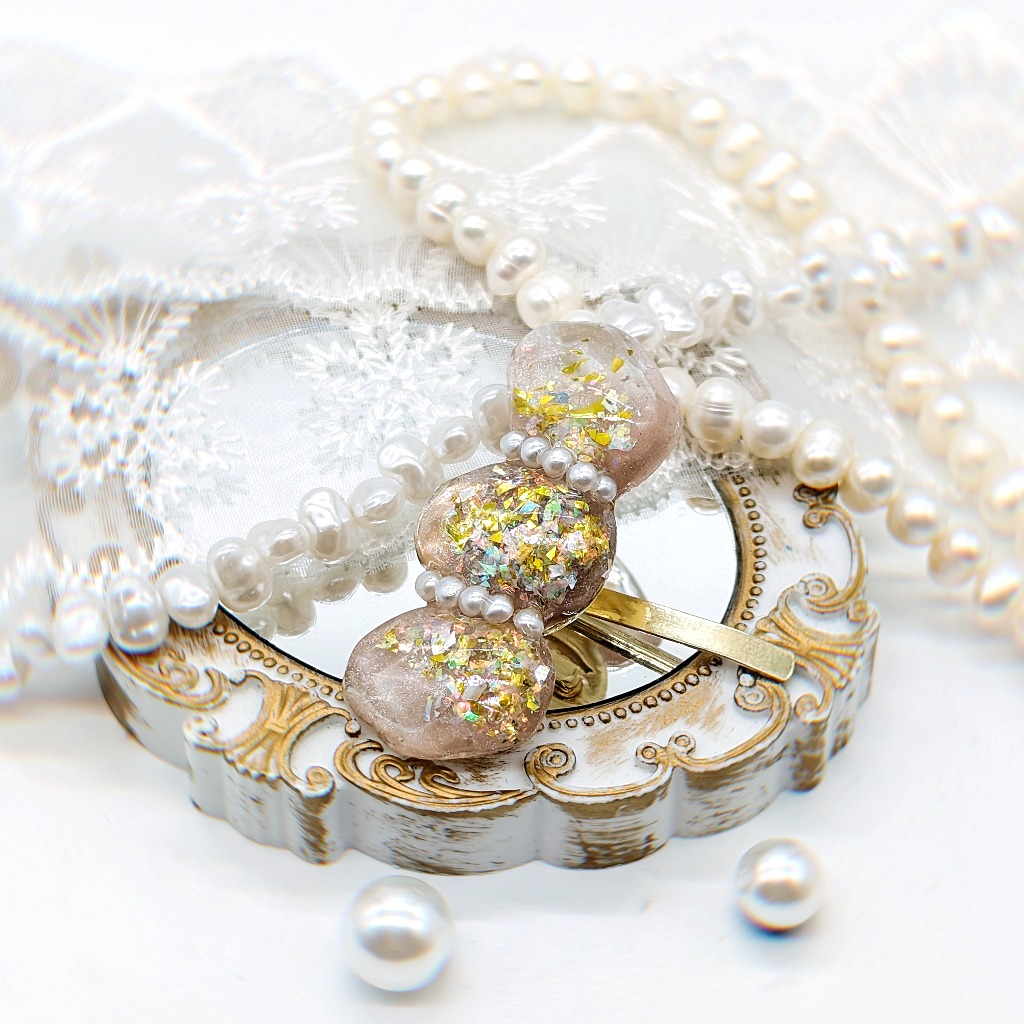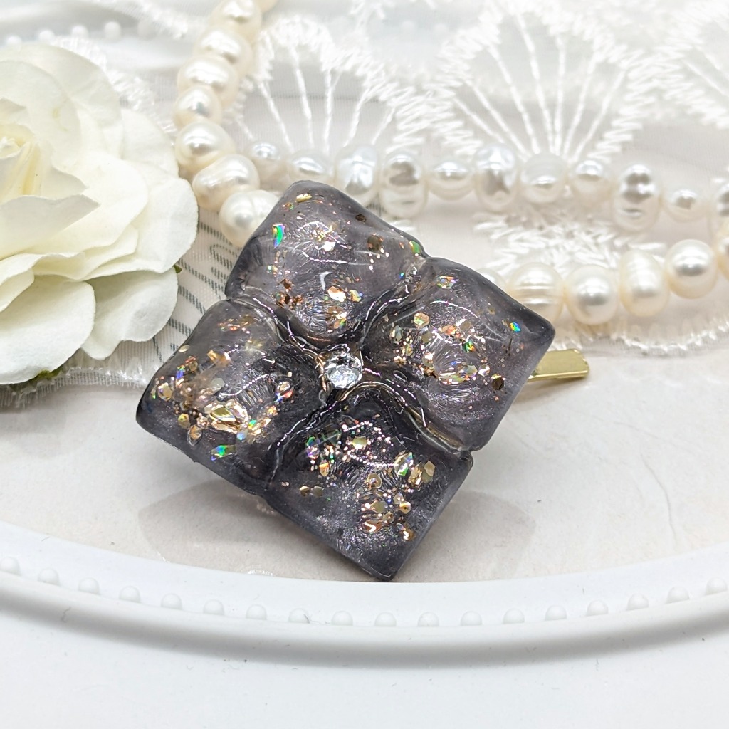透明感溢れる水面模様のヘアピンとなっております。