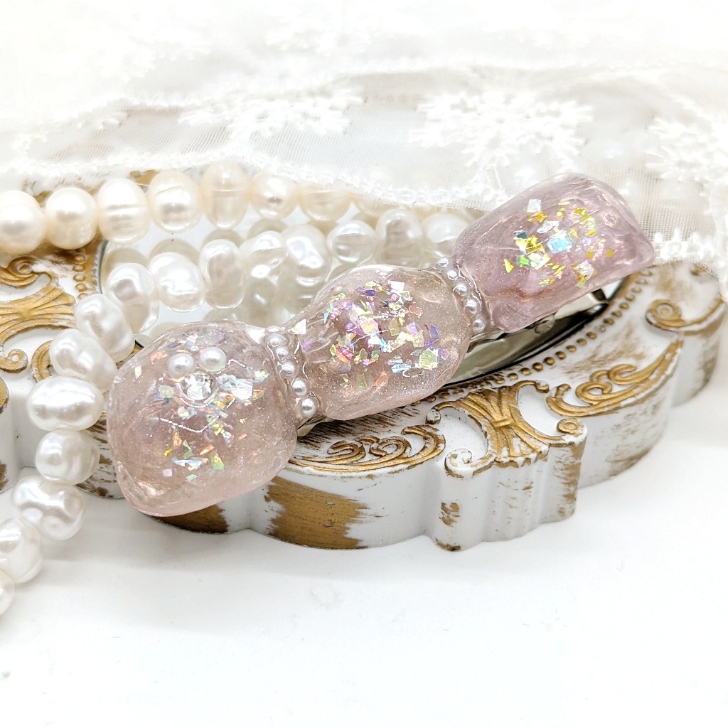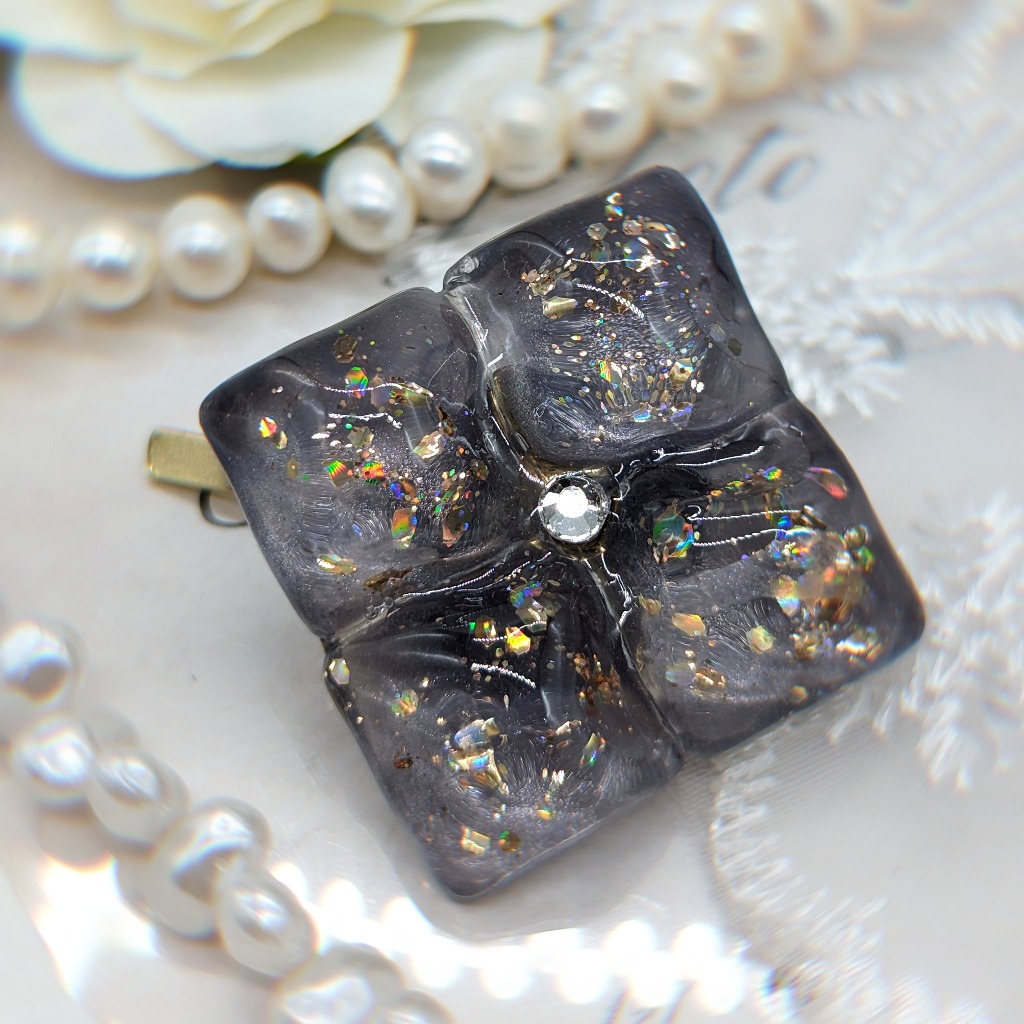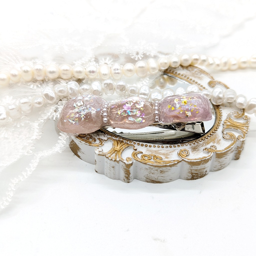 透明感溢れる水面模様のヘアピンとなっております。