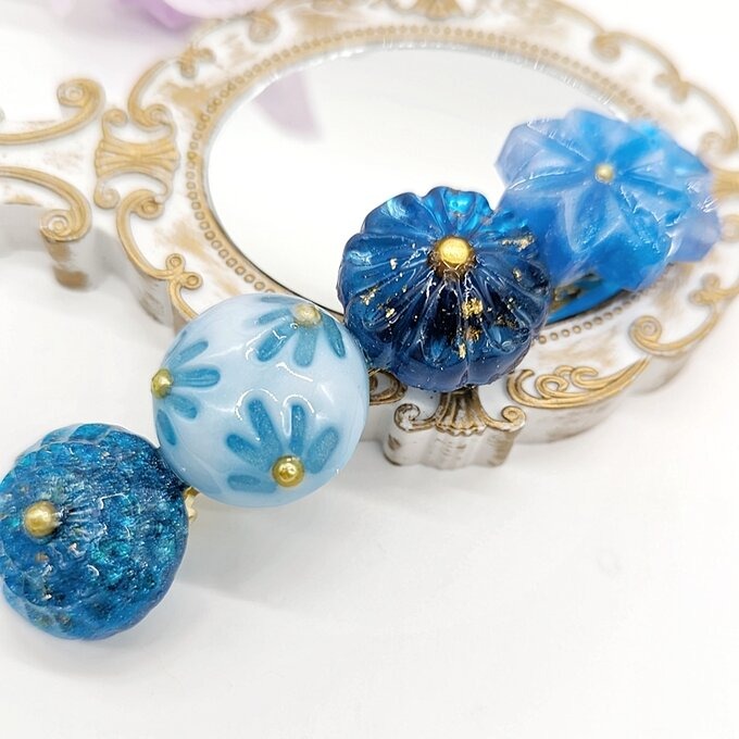 ブルー和菓子風のバレッタ